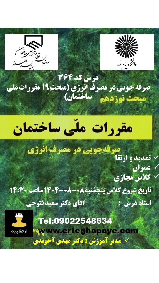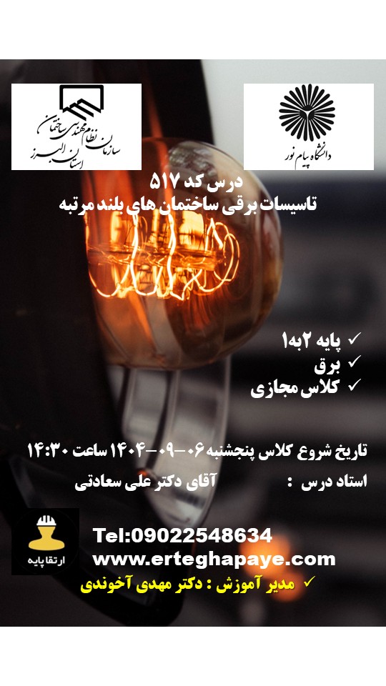 برق | طراحی و نظارت 3 به 2 | یک دوره الزامی (به غیر از مبحث 19) | ثبت نام |