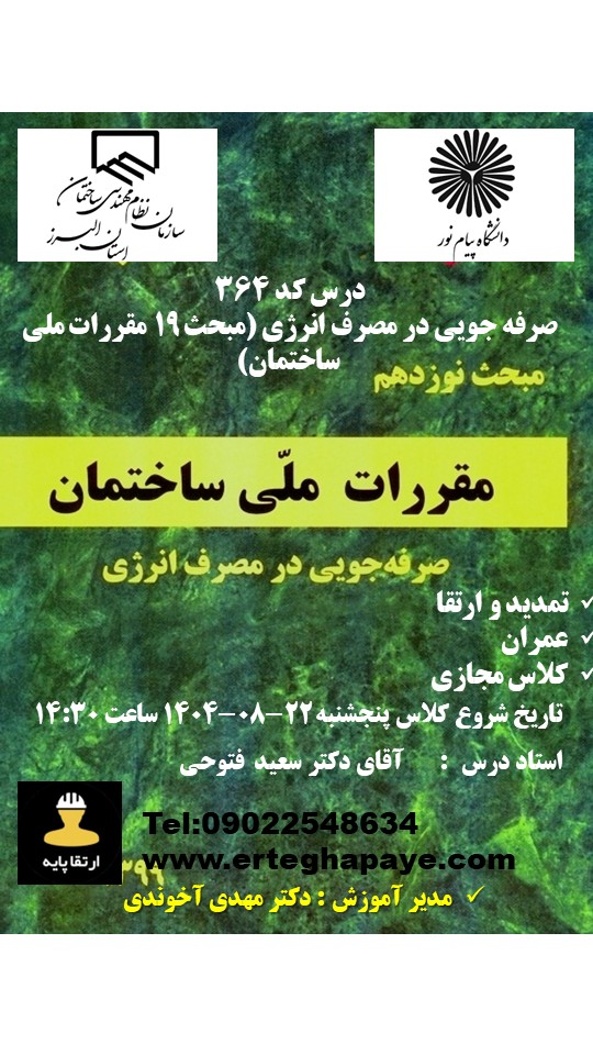 مبحث 19 | تمدید و ارتقا طراحی و نظارت | ثبت نام | |