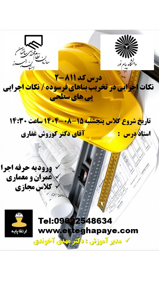 طراحی و نظارت 2 به 1 | چهار دوره الزامی (به غیر از مبحث 19) | ثبت نام | |