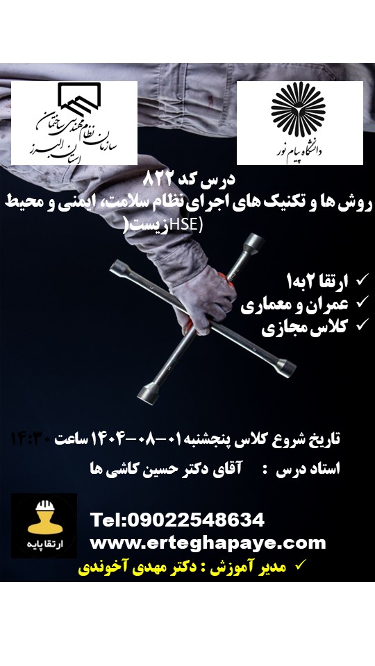 تمدید پروانه (HSE) | یک دوره 811/7 جهت تمدید نظارت و اجرا (مهندسانی که یکبار گذراندهاند الزامی نیست.) | ثبت نام | |