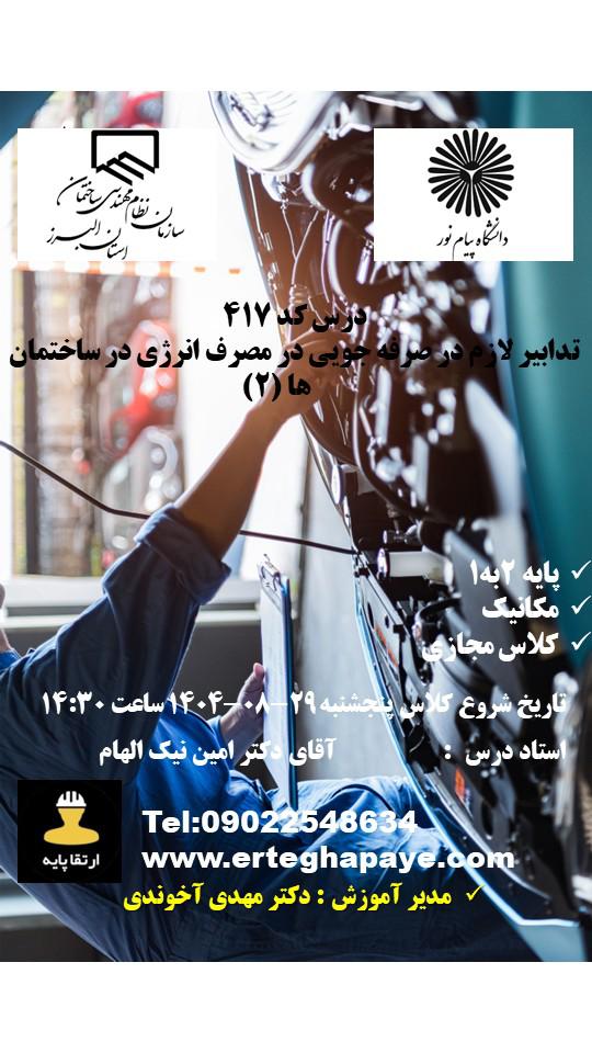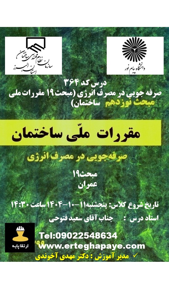 | برق | طراحی و نظارت 3 به 2 | یک دوره الزامی (به غیر از مبحث 19) | ثبت نام |