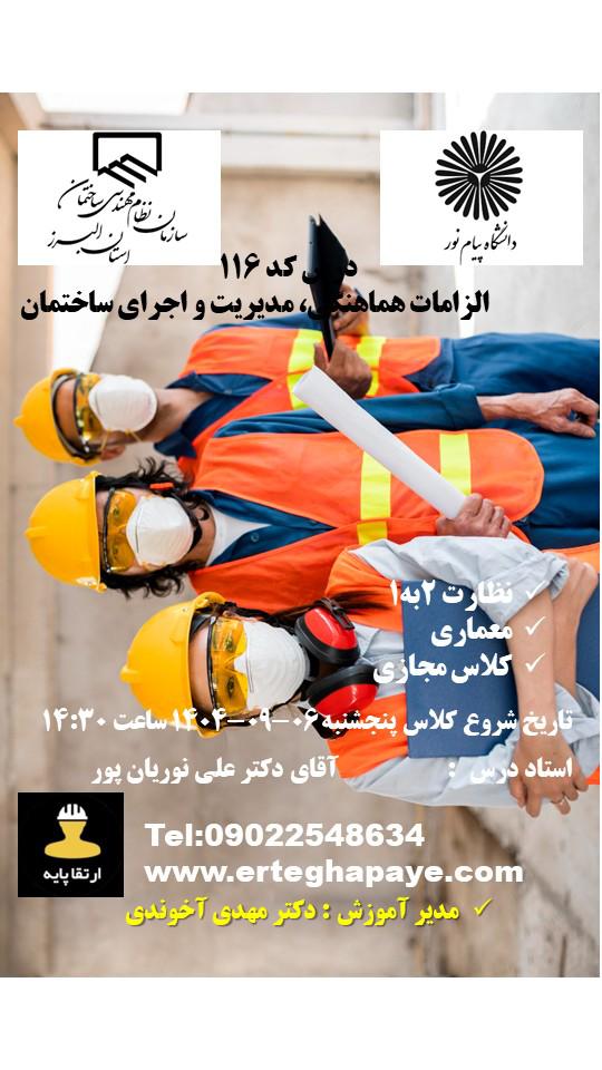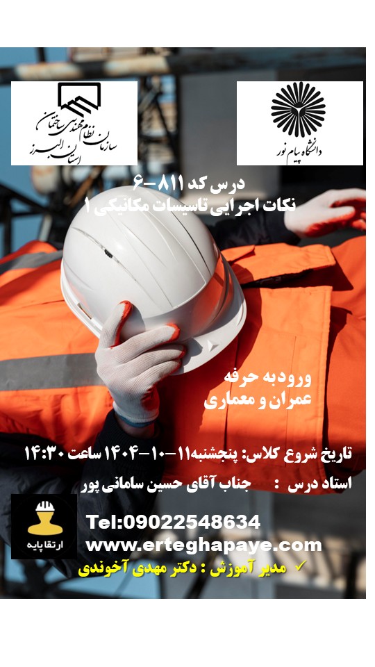 | نظارت 2 به 1 | سه دوره الزامی (به غیر از مبحث 19) | ثبت نام | |