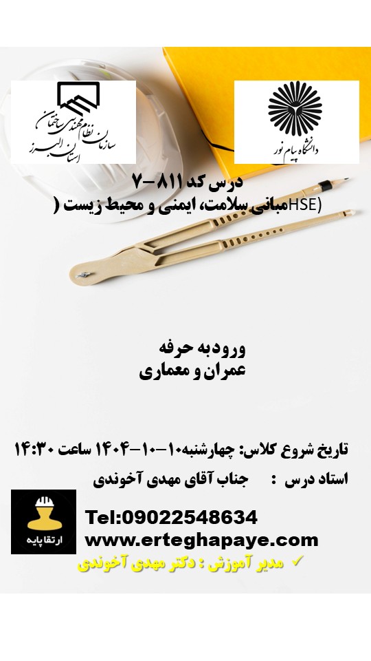 | تمدید پروانه (HSE) | یک دوره 811/7 جهت تمدید نظارت و اجرا (مهندسانی که یکبار گذراندهاند الزامی نیست.) | ثبت نام | |