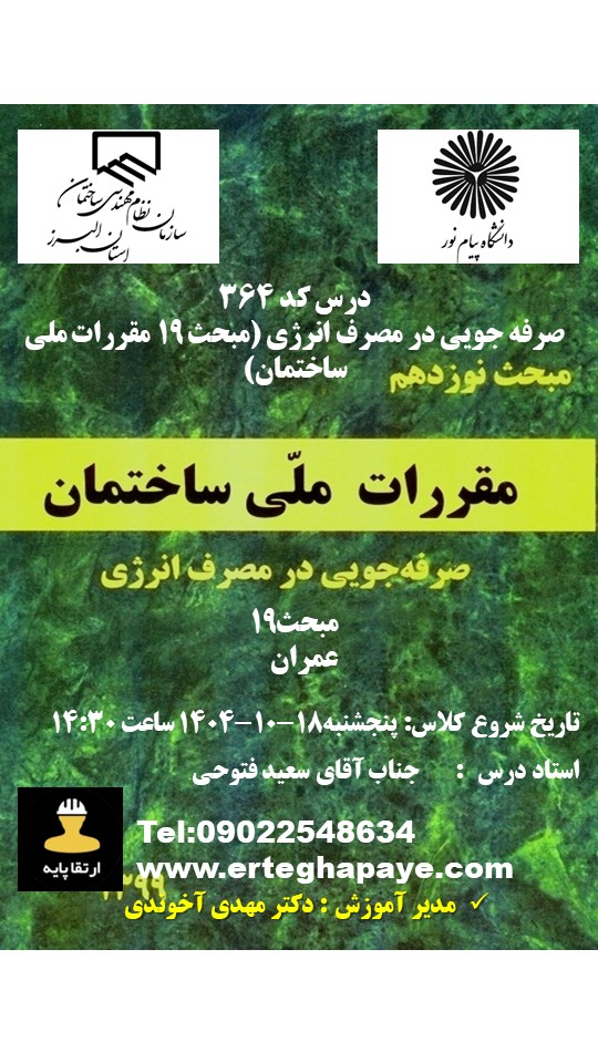 | مبحث 19 | تمدید و ارتقا طراحی و نظارت | ثبت نام | |