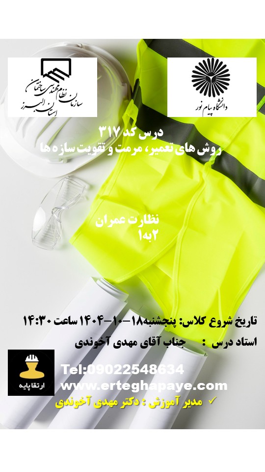 | عمران | نظارت 3 به 2 | دو دوره الزامی (به غیر از مبحث 19) | ثبت نام |