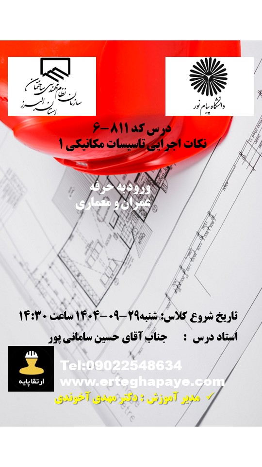 | مکانیک | طراحی و نظارت 3 به 2 | سه دوره الزامی (به غیر از مبحث 19) | ثبت نام |