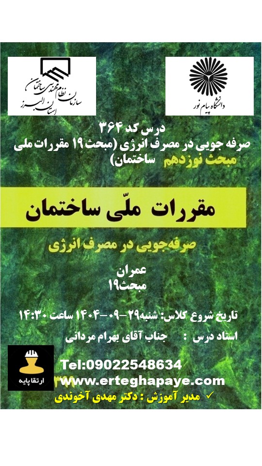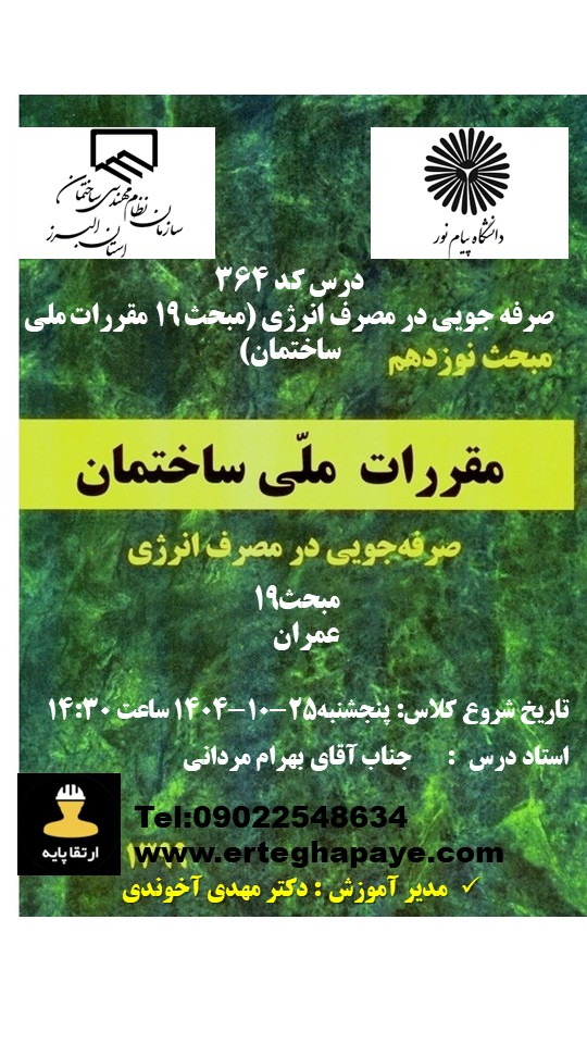 | طراحی و نظارت 2 به 1 | سه دوره الزامی (به غیر از مبحث 19) | ثبت نام | |
