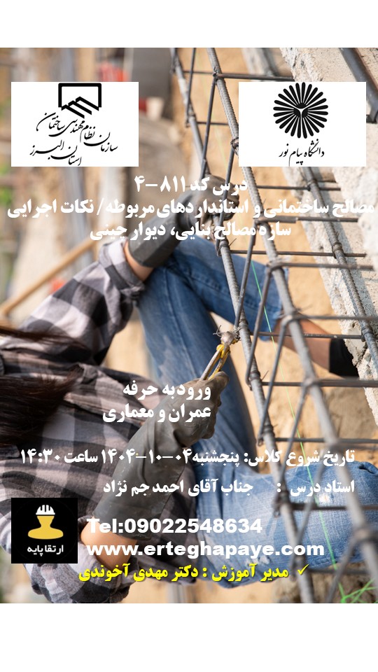 | ورود به حرفه | هفت دوره الزامی – داشتن کد عضویت نظام مهندسی الزامی | ||