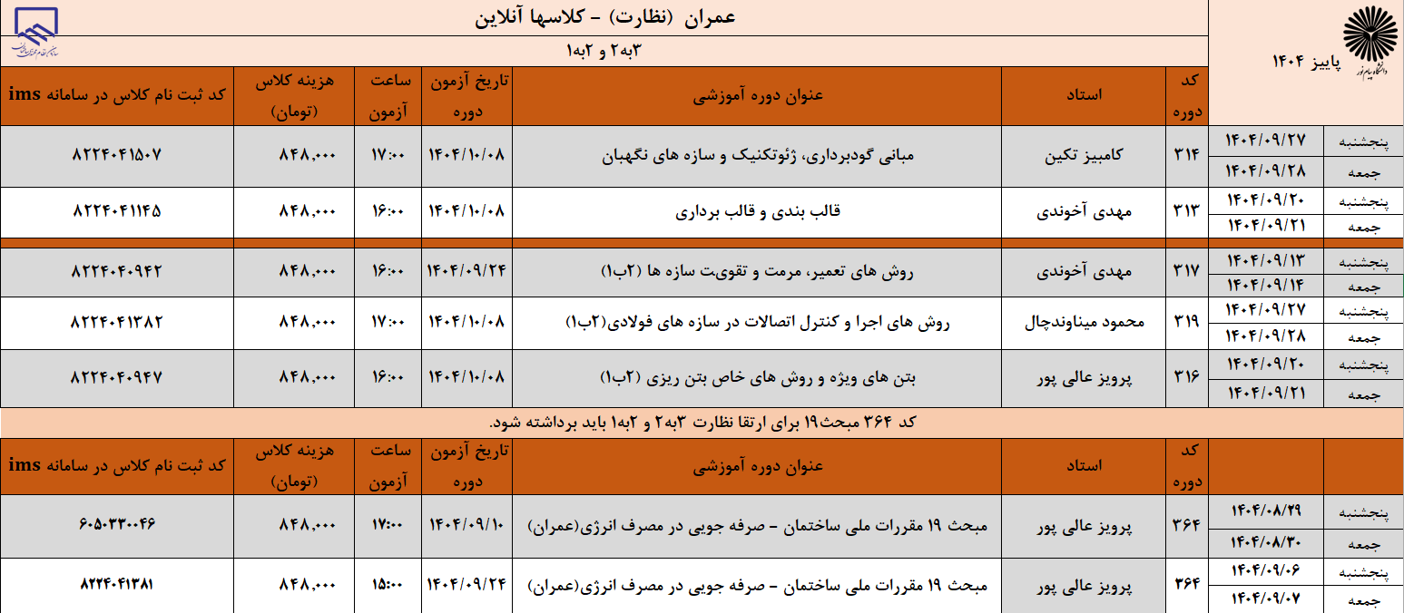 متقاضیان ارتقا 2 به 1 اجرا : کد 822 حتما برداشته شود همراه با چهار دوره دیگر(مجموعا 5 دوره) + مبحث 19
