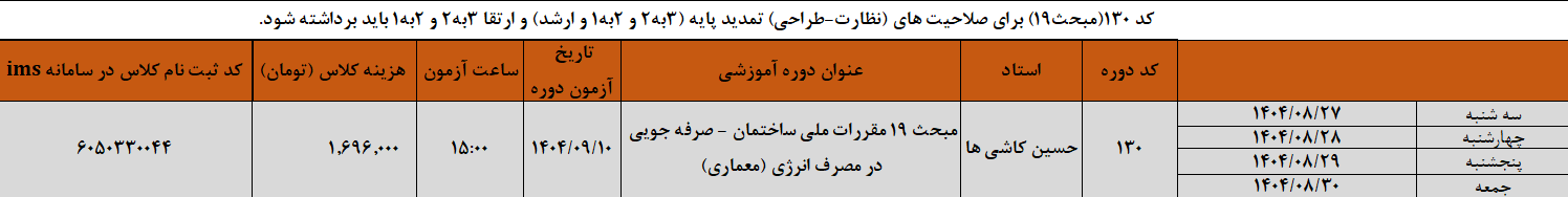 متقاضیان ارتقا 2 به 1 : سه دوره الزامی + مبحث 19