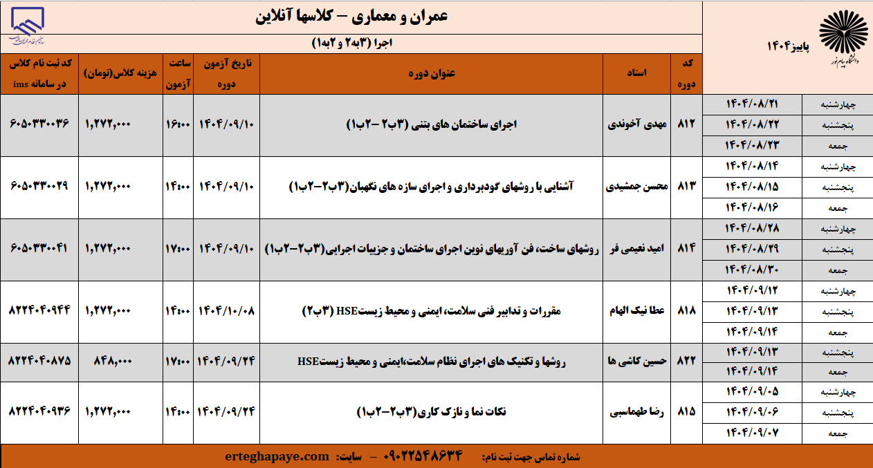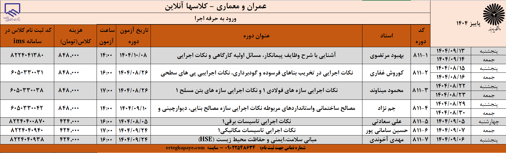 متقاضیان ارتقا 2 به 1 اجرا : کد 822 حتما برداشته شود همراه با چهار دوره دیگر(مجموعا 5 دوره) + مبحث 19