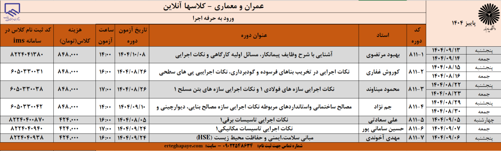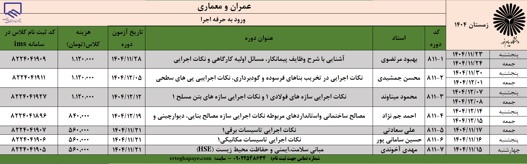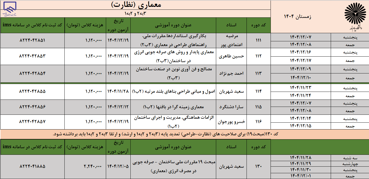 ثبت نام هفت دوره جدول بالا الزامی است.