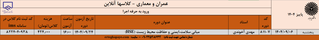 اگر یک بار کد 7-811 HSE یک روزه را گذرانده اید نیاز به انتخاب مجدد این درس نمی باشد.