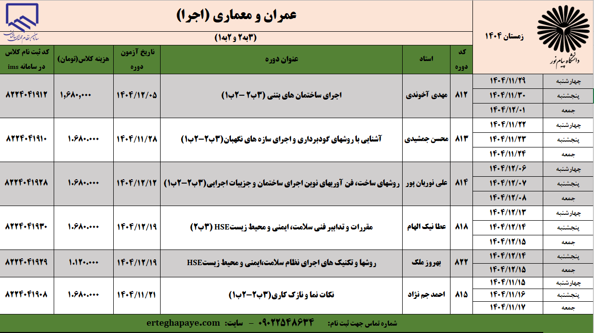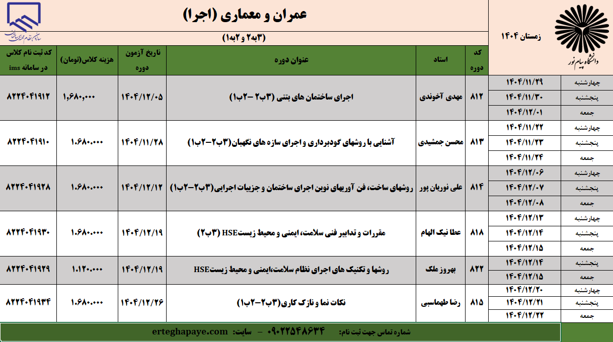 متقاضیان ارتقا 2 به 1 اجرا : کد 822 حتما برداشته شود همراه با چهار دوره دیگر(مجموعا 5 دوره) + مبحث 19