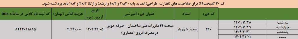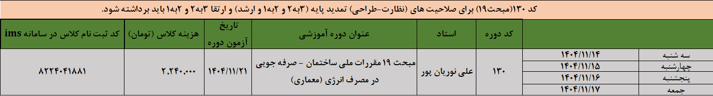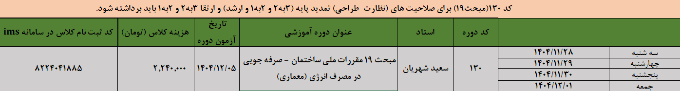 متقاضیان ارتقا 2 به 1 : سه دوره الزامی + مبحث 19