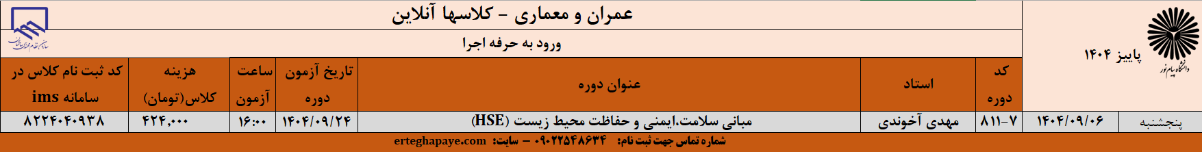 اگر یک بار کد 7-811  HSE یک روزه را گذرانده اید نیاز به انتخاب مجدد این درس نمی باشد.