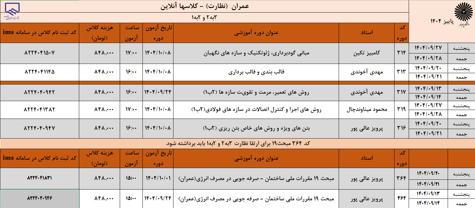 متقاضیان ارتقا 2 به 1 اجرا : کد 822 حتما برداشته شود همراه با چهار دوره دیگر(مجموعا 5 دوره) + مبحث 19