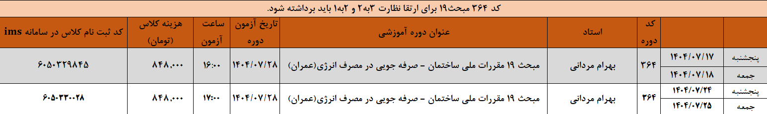 متقاضیان ارتقا 2 به 1 : سه دوره الزامی + مبحث 19