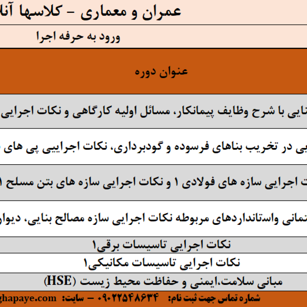 متقاضیان ارتقا 2 به 1 اجرا : کد 822 حتما برداشته شود همراه با چهار دوره دیگر(مجموعا 5 دوره) + مبحث 19