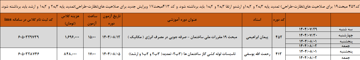 متقاضیان ارتقا 2 به 1 نظارت و طراحی : چهار دوره الزامی + مبحث 19