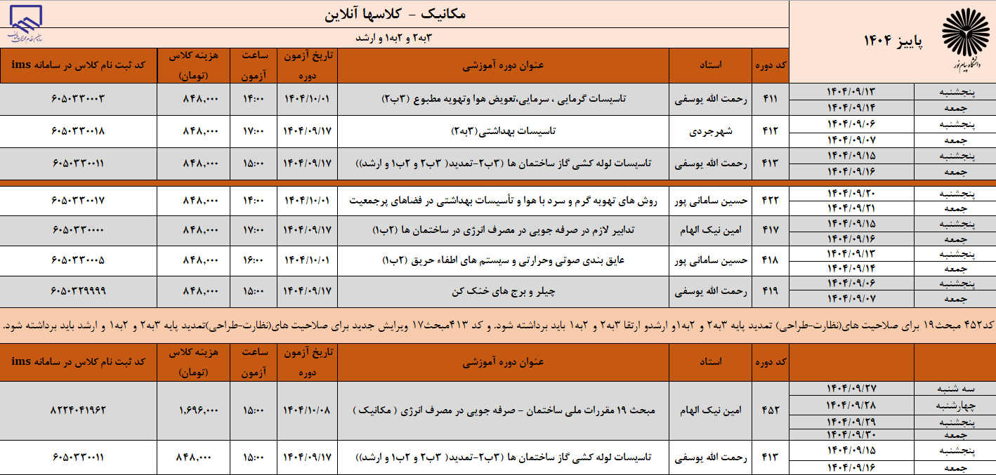 خواهشمندیم پیش از ثبت نام ، از عدم تداخل روز های دوره های خود اطمینان حاصل فرمایید.