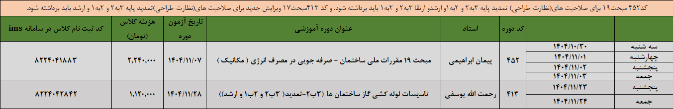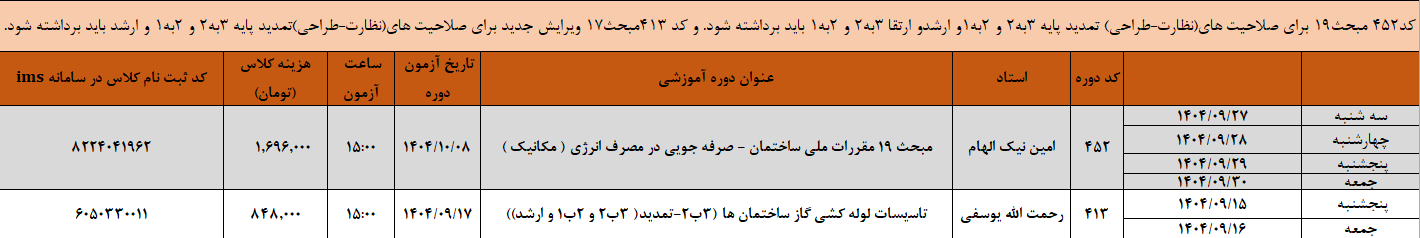 متقاضیان ارتقا 3 به 2 نظارت و طراحی : سه دوره الزامی + مبحث 19