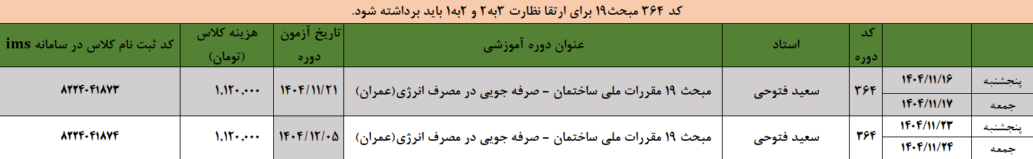 متقاضیان ارتقا 2 به 1 : چهار دوره الزامی + مبحث 19