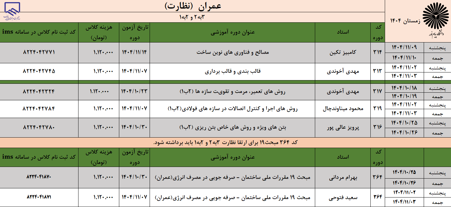 متقاضیان ارتقا 2 به 1 اجرا : کد 822 حتما برداشته شود همراه با چهار دوره دیگر(مجموعا 5 دوره) + مبحث 19