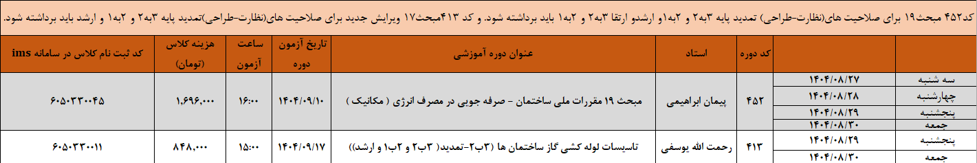 متقاضیان ارتقا 2 به 1 نظارت و طراحی : چهار دوره الزامی + مبحث 19